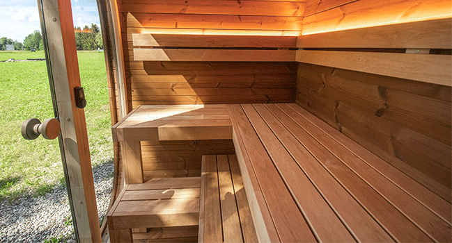 - Chaleur : Il utilise un poêle à bois ou électrique pour chauffer des pierres. L’air dans le sauna atteint des températures entre 70 et 100°C.